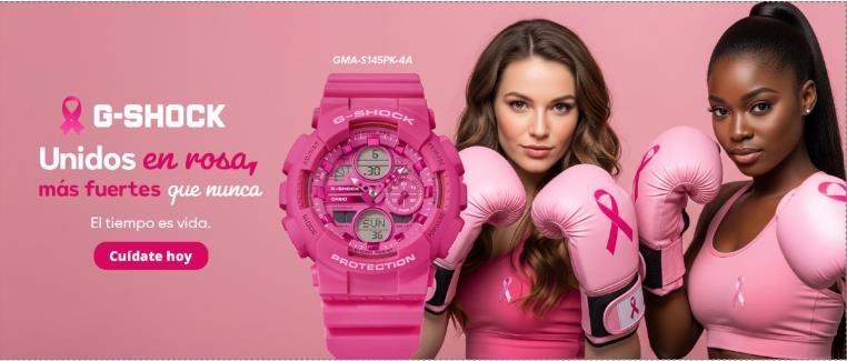 El G-SHOCK nació bajo la premisa de ser un reloj resistente a cualquier prueba. Hoy, ese espíritu evoluciona hacia una visión más amplia: acompañar a quienes buscan superar retos, cuidando al mismo tiempo lo más valioso, la salud. Por ello, cada octubre Casio presenta ediciones especiales en tonos rosados como símbolo de apoyo a la causa, invitando a sumar esfuerzos en la construcción de una sociedad que no detenga sus sueños por la enfermedad.