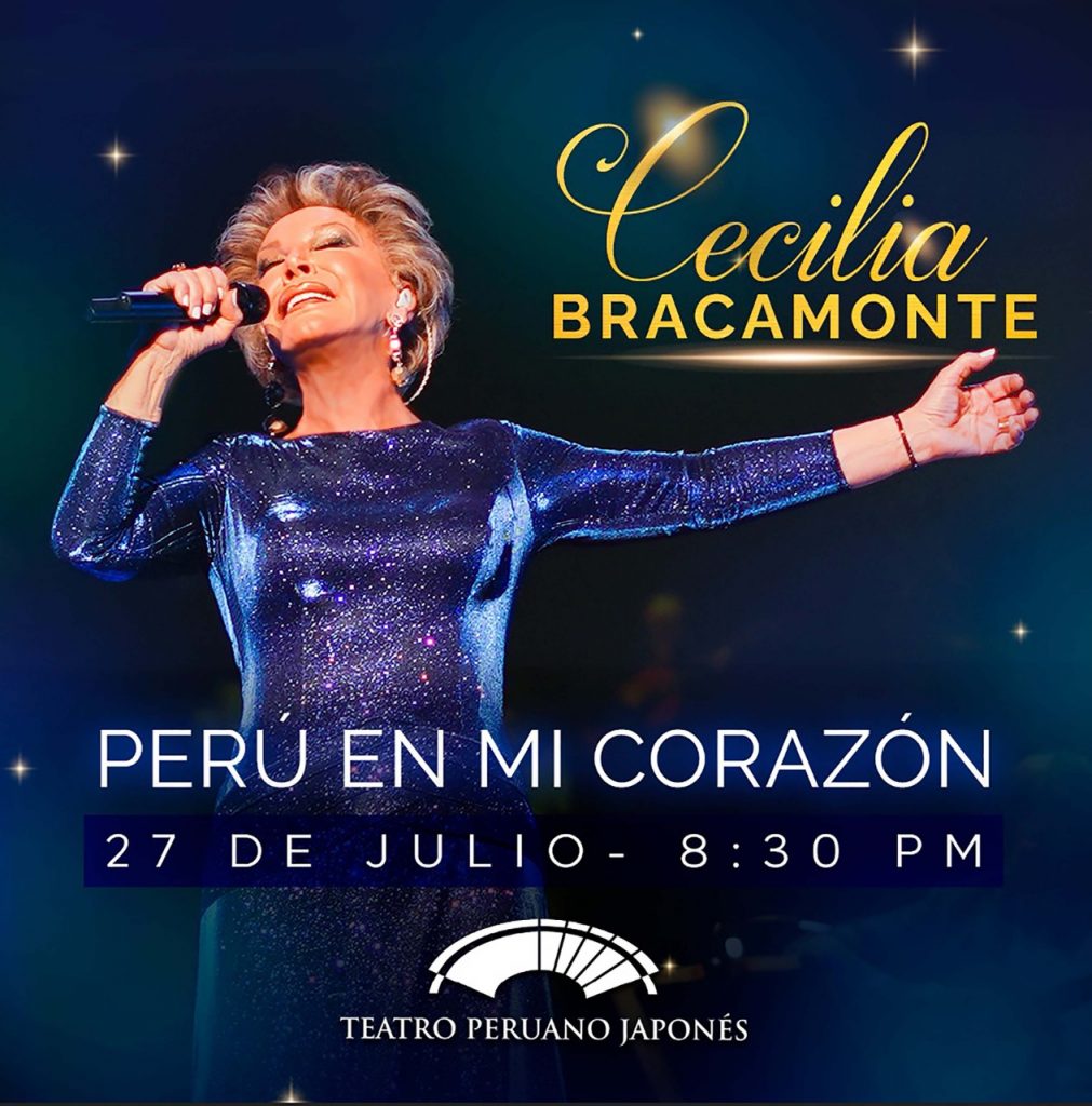 La destacada cantante nacional Cecilia Bracamonte invita a sus seguidores a celebrar junto a ella las Fiestas Patrias, en su nuevo recital “Perú en mi corazón”, único concierto que ofrecerá este 27 de julio, en el cálido Teatro Peruano Japonés. En esta serenata de homenaje a la Patria y a los grandes autores de la música peruana, la ‘Diva del Criollismo Nacional’ interpretará lo mejor del repertorio de la canción criolla.
