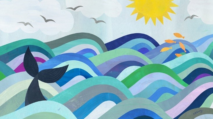 Mi pieza Enchanted Sea es una de mis favoritas porque cierra la brecha entre el arte abstracto y la ilustración. La paleta de colores frescos de esta pieza tiene un ambiente moderno y vibra playera.