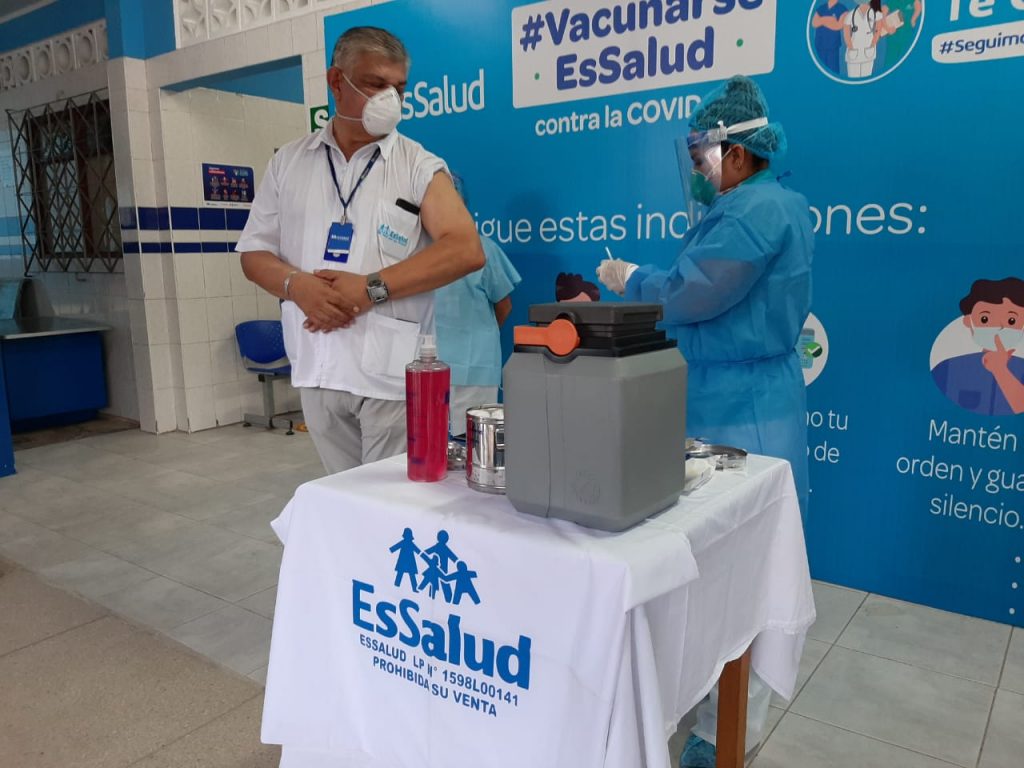 El Dr. Luis Quevedo Rossi (60), médico especialista en emergencias y desastres, cuya incansable labor, compromiso y empuje logró que se adecue en tiempo récord a la atención a pacientes Covid-19, en el Hospital III de Iquitos del Seguro Social de Salud (EsSalud), ante la sobredemanda registrada en el Hospital Regional y en otros establecimientos de Loreto durante la primera ola de la pandemia, fue uno de los primeros profesionales de la salud, en este punto del país en recibir la primera dosis de la vacuna Sinopharm.