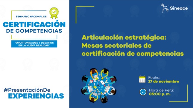 Las mesas sectoriales de certificación de competencias en justicia, seguridad ciudadana y programas sociales serán las tres experiencias que se presentarán este 17 de noviembre en la Feria Virtual “La Certificación de Competencias: Nuevos Retos, Nuevos Enfoques”, que organiza el Sistema Nacional de Evaluación, Acreditación y Certificación de la Calidad Educativa (Sineace).