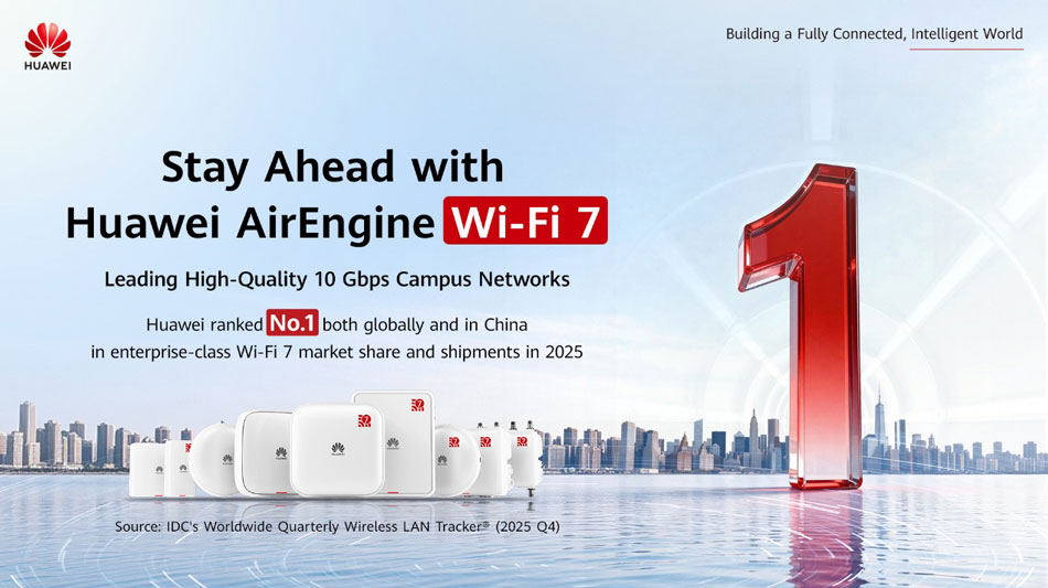 Huawei ha mantenido su posición como el proveedor líder mundial en el mercado de Wi-Fi 7 de clase empresarial, ocupando el primer lugar a nivel mundial tanto en participación de mercado como en envíos, según el Worldwide Quarterly Wireless LAN Tracker (2025 Q4) de IDC.