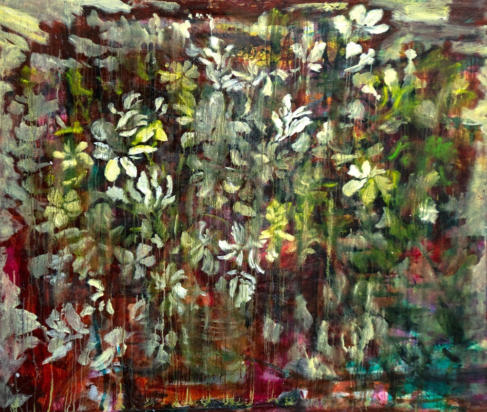 Estas pinturas tienen un ritmo gestual propio. Esa gestualidad hace que el pintor sumergido en su expresionismo abstracto continúe en su búsqueda, y desde esa emoción, como si los colores vibraran hasta crear una explosión de sensaciones visuales. Lo espontáneo de sus trazos reinterpreta la realidad desde el deslizamiento violento de los colores.