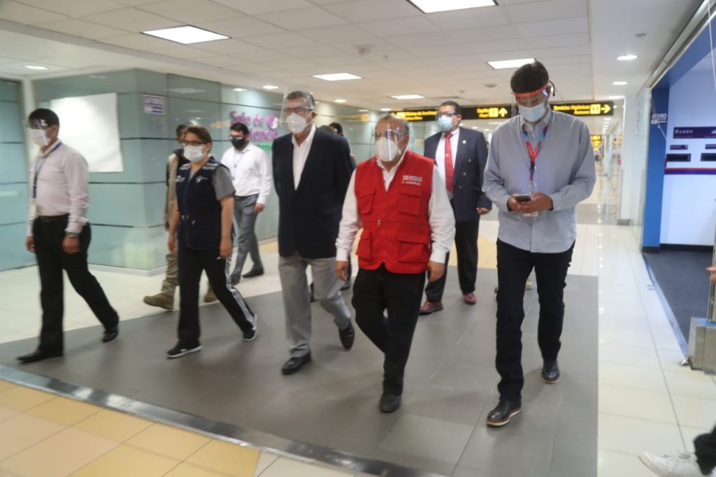 El ministro recorrió los ambientes de registro de pasajeros (check-in), control de embarque nacional e internacional, migraciones y aduanas, recojo de maletas, entre otros. El objetivo fue verificar que se cumplan las medidas de distanciamiento físico, uso de mascarillas y protectores faciales, así como la medición de temperatura y entrega de declaraciones juradas y resultados de pruebas moleculares de los pasajeros.