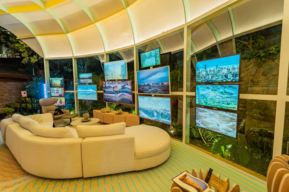“Naturaleza Digital”, ambiente creado por el arquitecto Juan Sebastián Rico, cuenta con la presencia de los representantes por excelencia de la categoría. Es así que, al visitar el espacio Samsung, podrás interactuar con The Frame, el televisor que brinda una experiencia inmersiva al estar encendido y se convierte en una obra de arte cuando está apagado, gracias a la función Art Mode. Así mismo, los visitantes podrán encontrar también The Serif, un televisor con un diseño vanguardista de 360° que logra incorporarse con estilo en la decoración. En la parte exterior del espacio Samsung se observan, además, las pantallas de The Terrace, un televisor diseñado para exteriores, ofreciendo gran brillo y la capacidad de resistir las inclemencias del clima.