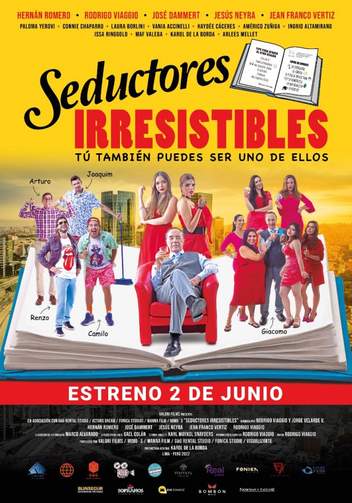 El 2 de junio llega a las salas de cine de todo el Perú “Seductores Irresistibles”, una nueva comedia peruana que combina perfectamente el talento y la experiencia de un verdadero seductor, el primer actor peruano, Hernán Romero junto al carisma, juventud y popularidad de Jose Dammert, Jesús Neyra, Jean Franco Vertiz y Rodrigo Viaggio. Producida por Valori Films y distribuida por West Bay presentan el tráiler y afiche oficiales.