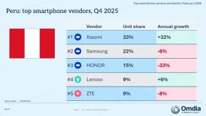 Lima, febrero de 2026. Xiaomi consolidó su liderazgo en el mercado peruano de smartphones al cierre de 2025, al alcanzar el primer lugar en participación de mercado por volumen de importaciones, según el más reciente informe de la consultora internacional Omdia.